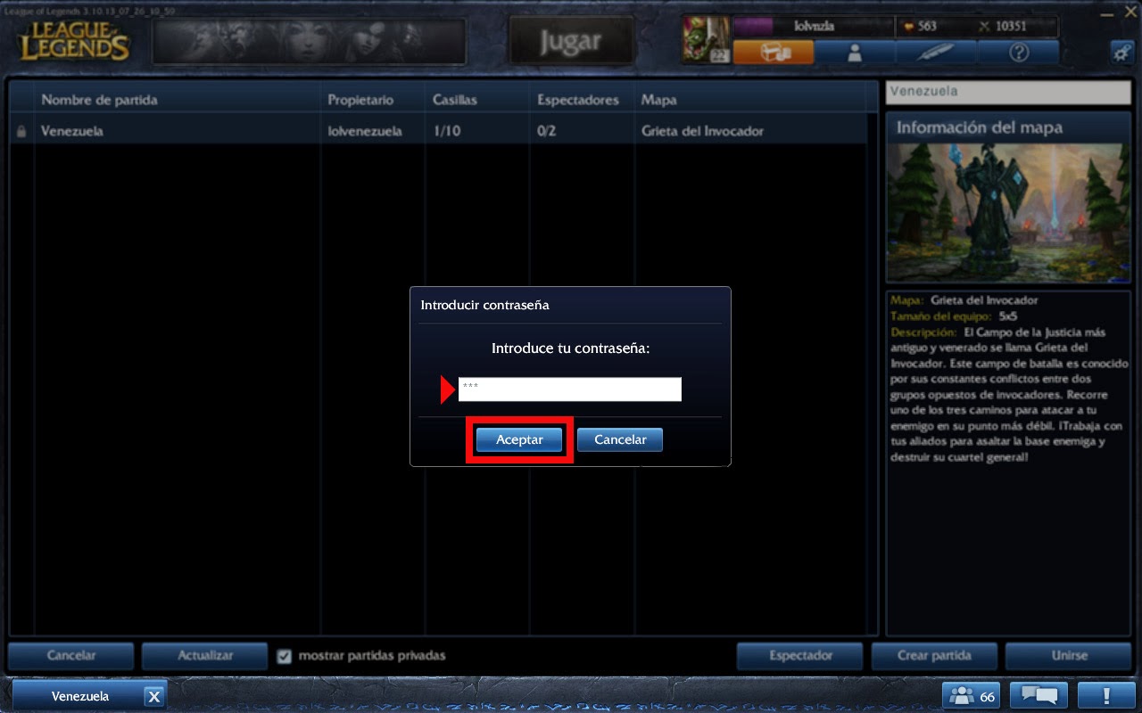 b.2) Se le prohibirá la entrada a las partidas personalizadas.