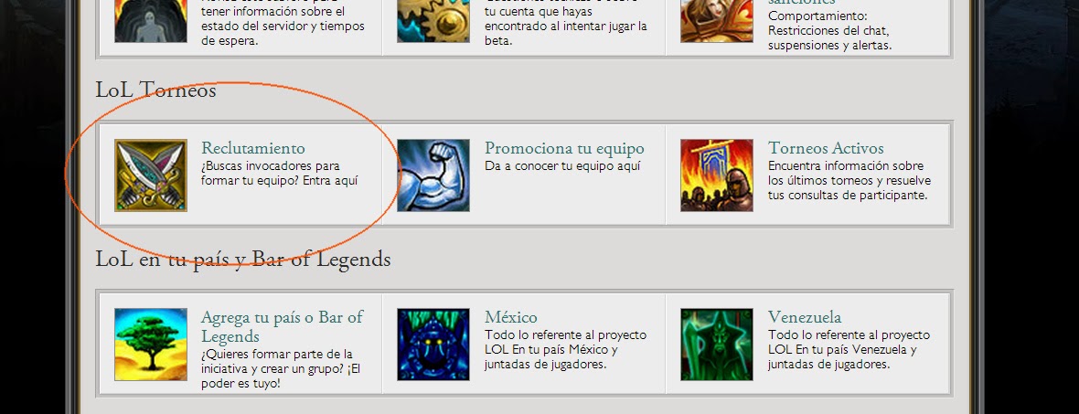 Les recomendamos a todas esas personas que buscan equipo o que tienen un equipo y buscan algún suplente o jugador, que lo hagan directamente en el lugar indicado para ello que es el Foro de LAN en la parte de LOL TORNEOS > RECLUTAMIENTOS.